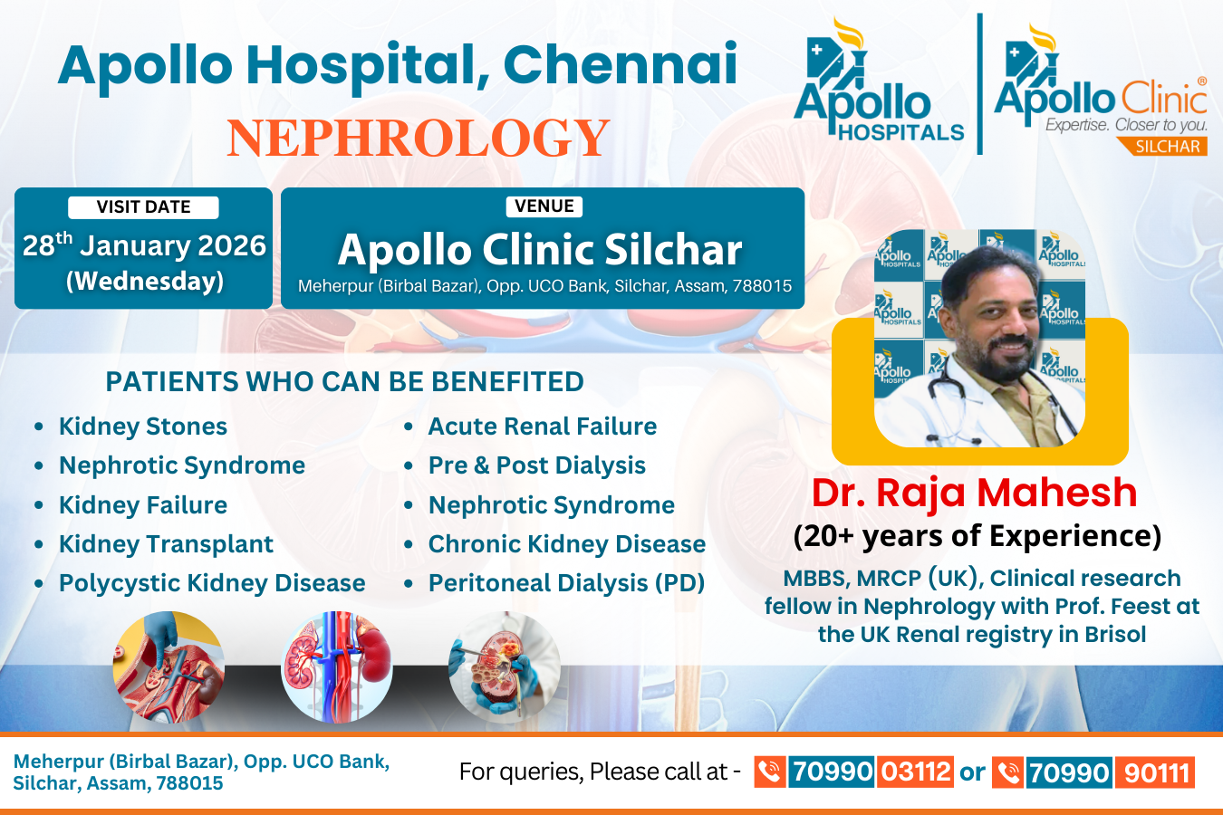 At Apollo Clinic Silchar, our mission has always been to bridge the gap between world-class healthcare and the people of the Barak Valley. We understand the physical and financial strain patients face when traveling to South India for specialized medical attention. To continue our commitment to your health, we are proud to announce that Dr. Raja Mahesh, […]
